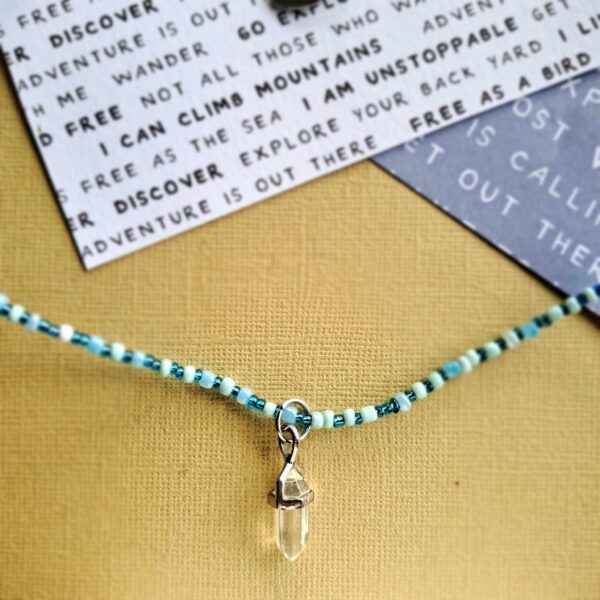 Introducing our new and fabulous bead and crystal necklace! This stunning accessory is not only simple and elegant but also comes at an affordable price. Its cool tones make it perfect for adding a touch of sophistication to any outfit.