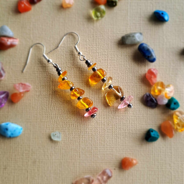 We love the colour combination of our orange and pink gem and bead earrings on a silver look standard hook! The combination of vibrant colors is just so eye-catching and fun. I can already imagine how stunning these earrings will look when worn, adding a pop of excitement to any outfit. The silver look hook adds a touch of elegance and complements the gems and beads perfectly. I simply cannot wait to wear these earrings and show off their playful and energetic vibes!